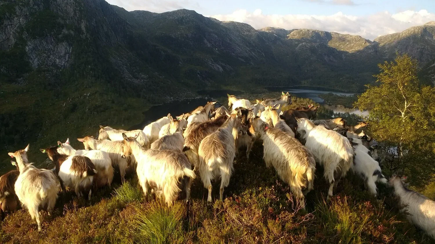 70 geiter frå Hole gard er på stølen i Dyrkolbotn om sommaren. Geitene går fritt på fjellbeite frå juli, til ut i september.